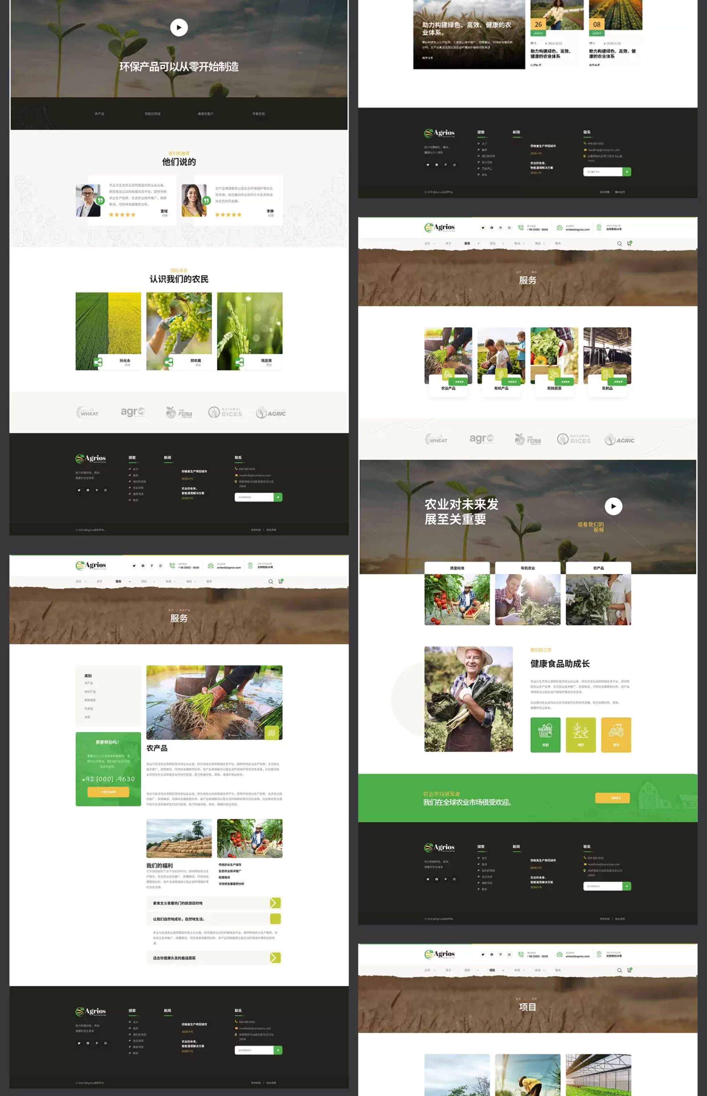 配色自然:农业与自然息息相关,因此网站的配色应以大自然的颜色为主,如绿色、棕色、蓝色等,这些颜色能够给人以舒适和亲近自然的感觉。